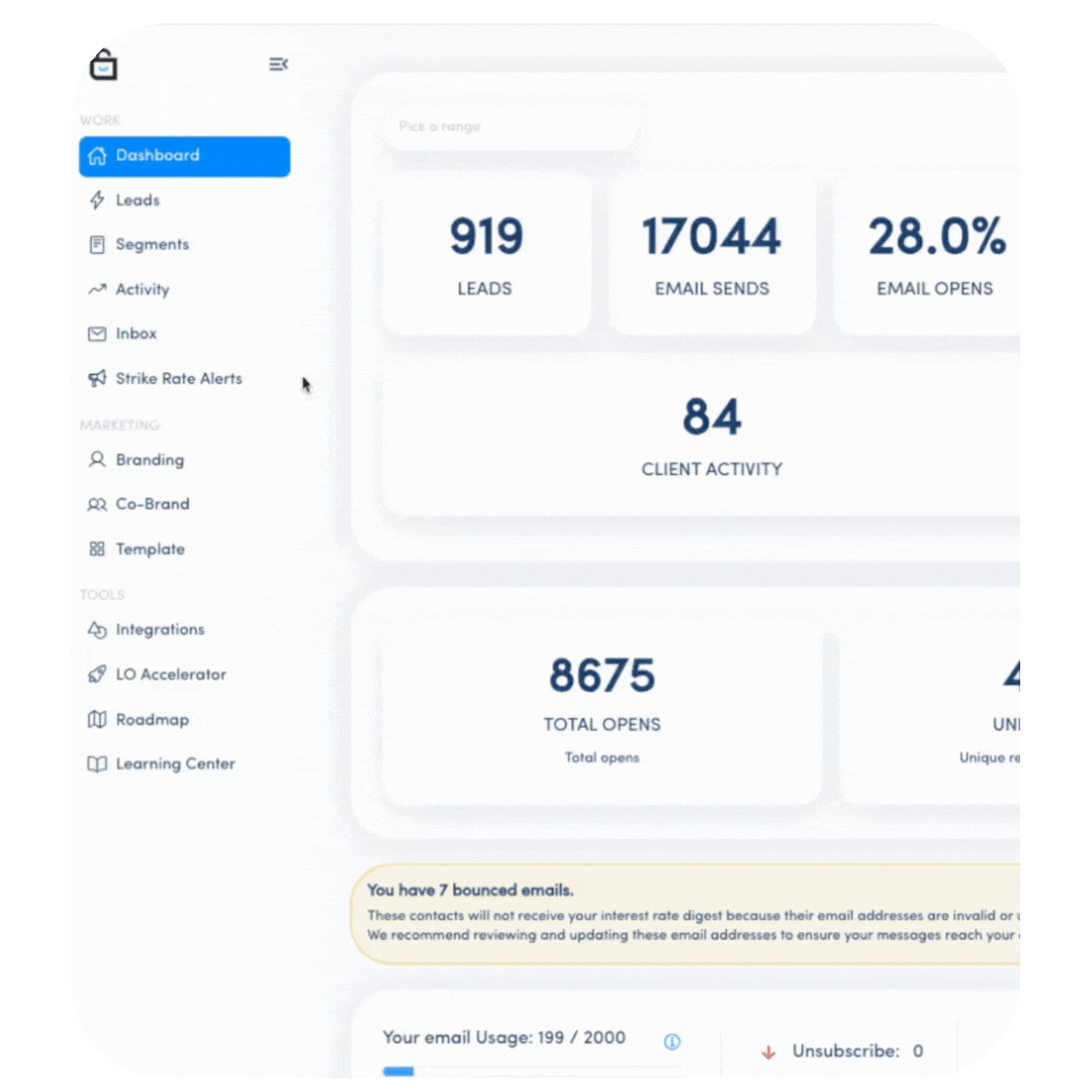 Learn how easy it is to upload and send high value interest rate data right to your leads and past clients